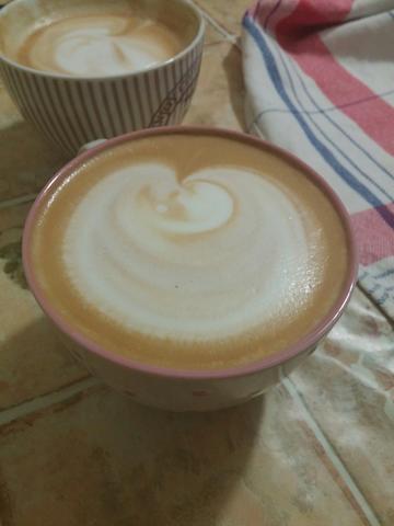 ορίστε και κάνα δυό καφεδάκια κι απο μένα από την ταπεινή saeco...latte art δεν το λες αλλά μπορείς να το πεις οτι μοιάζει με μήλο :Yeah: