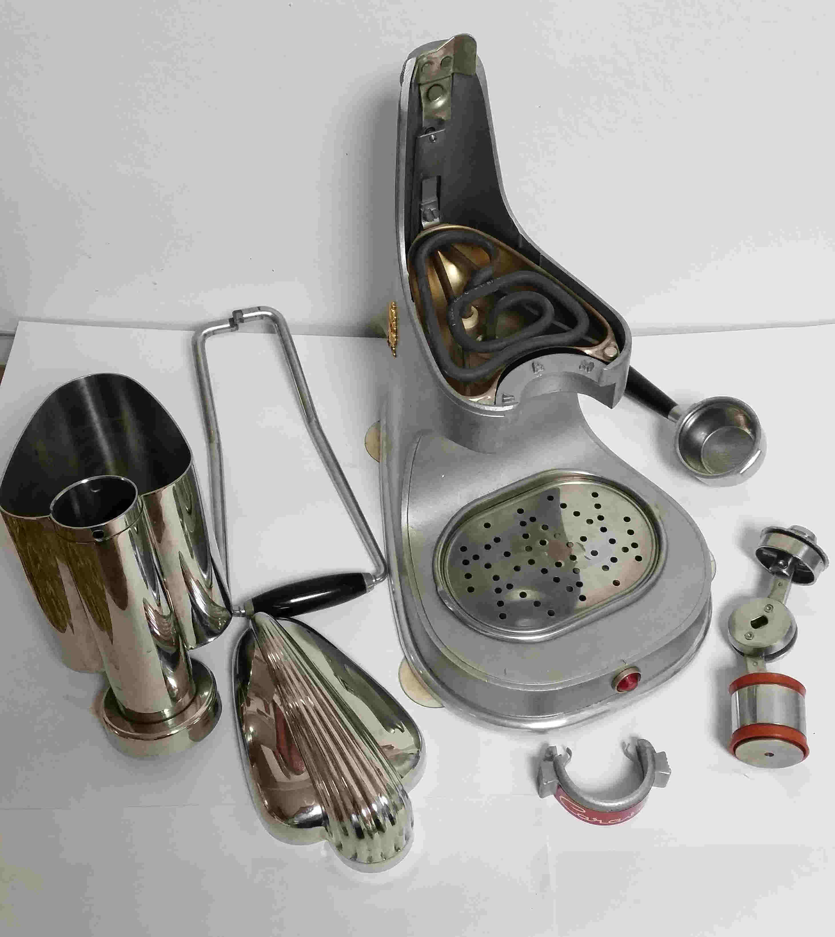 Μετά από παραγγελία σετ φλατζών από ceccarelli και αντικατάσταση του αυθεντικού Ιταλικού αγείωτου καλωδίου με ένα γκρι γειωμένο schuko (μην πάθουμε και καμία ζημιά για ένα εσπρασάκι),ήταν έτοιμη για χρήση.