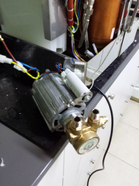 Η Αντλία της μηχανής παίρνει κίνηση από το αντίστοιχο μοτέρ το οποίο όμως δεν είναι οριζόντια τοποθετημένο (για χωροταξικούς λόγους) αλλά κάθετα στην μηχανή και το χειρότερο ; το μοτέρ είναι κάτω από την αντλία με ενδεχόμενο κίνδυνο να περάσει νερό στο μοτέρ από την αντλία.