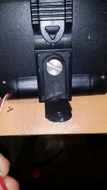 Κατοπιν ανοιχτηκε μια καταληλη εσοχη στο καπακι της μηχανης για να περασει το καλωδιο και πλεον βιδωθηκε η γωνια-βαση στο καπακι της μηχανης