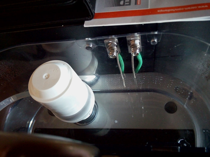 εδω φαινονται τα ηλεκτροδια που ελεγχουν την κατω σταθμη του νερου ενεργοποιοντας ενα buzzer