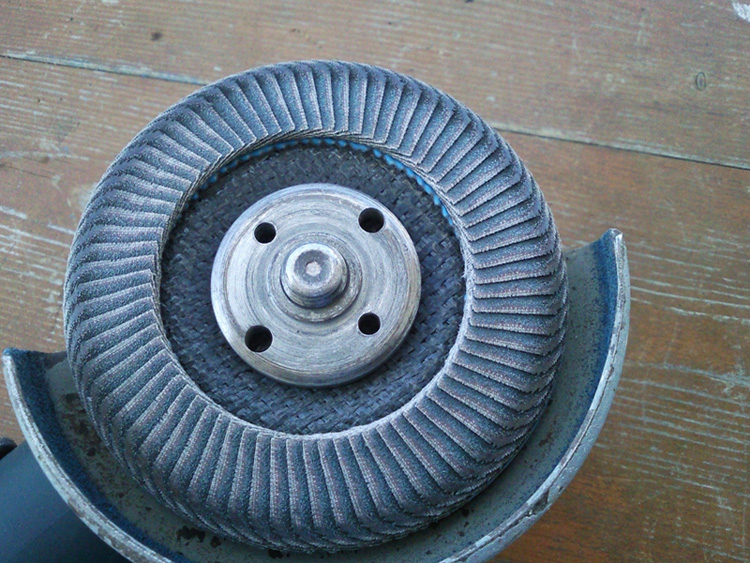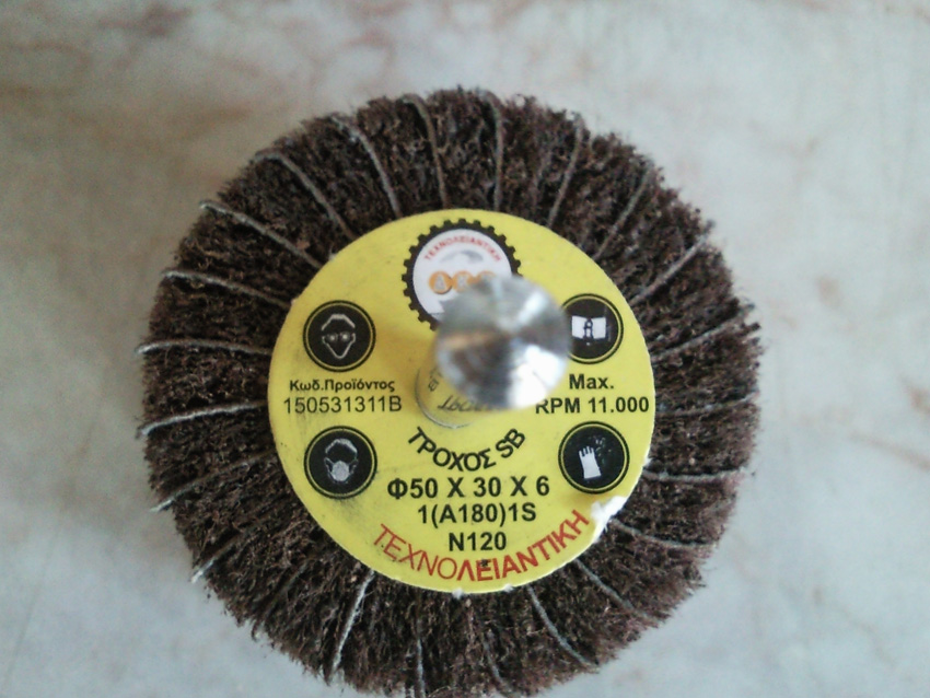 τωρα βαζουμε στον τροχο δισκο που εχει πανω γυαλοχαρτα Νο 120