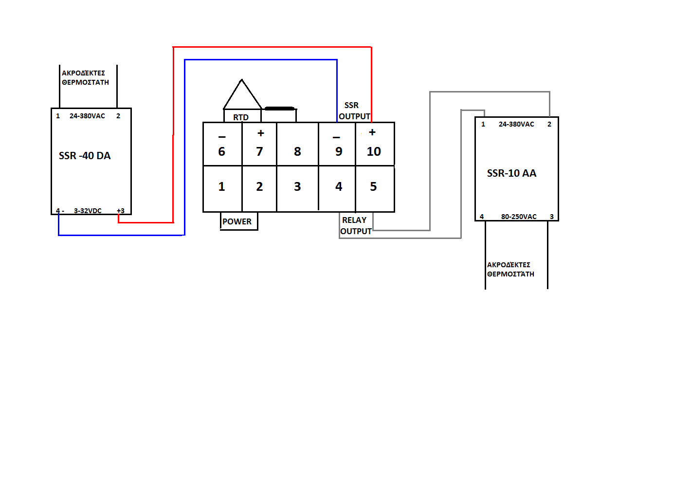 τα δυο + του τροφοδοτικου και του pid θα συνδεθουν στο ssr μεσω δυο διοδων.