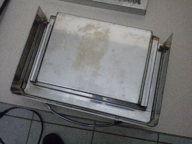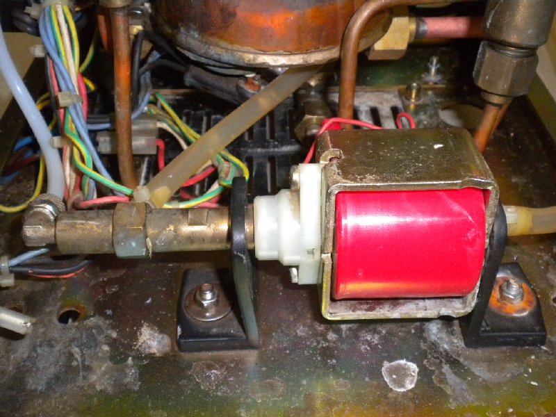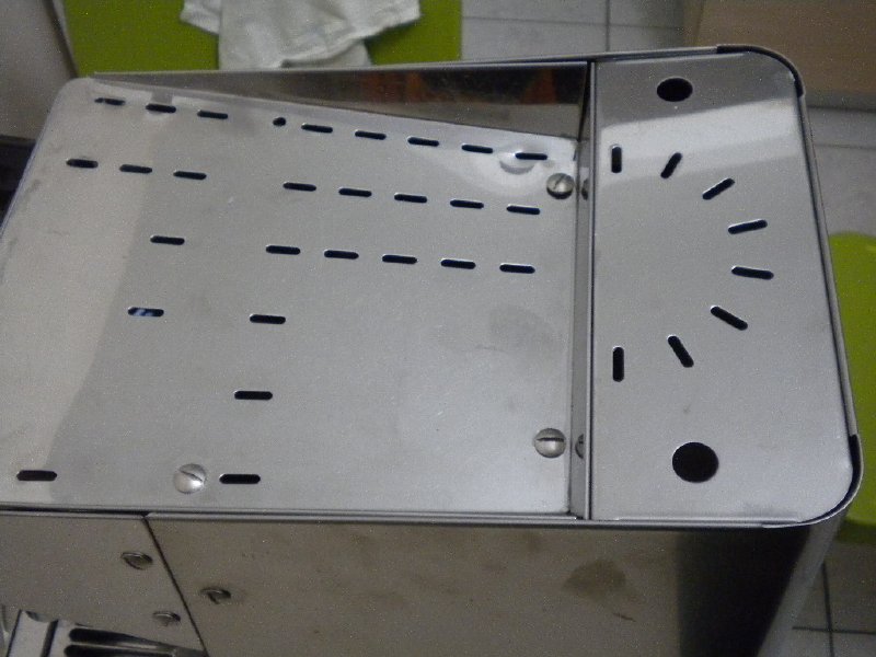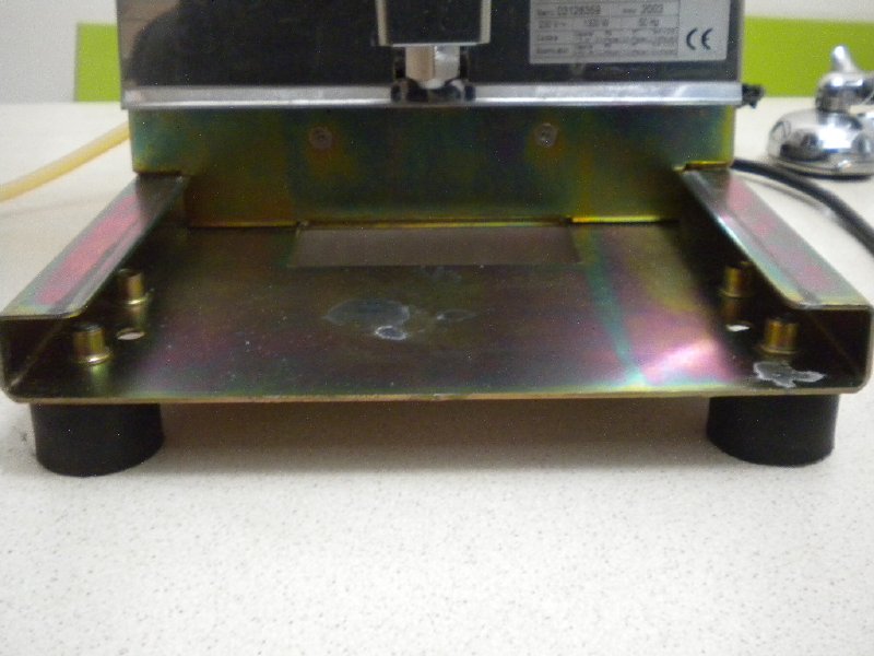 Η χοντρη λαμαρινα εχει συστημα ελεγχου της ποσοτητας νερου στο δοχειο που δουλευει με το βαρος του.Οταν ελαφρυνει το δοχειο τοτε ενας διακοπτης κλεινει την παροχη ρευματος της μηχανης.Απλα το καταργουμε για ευνοητους λογους.