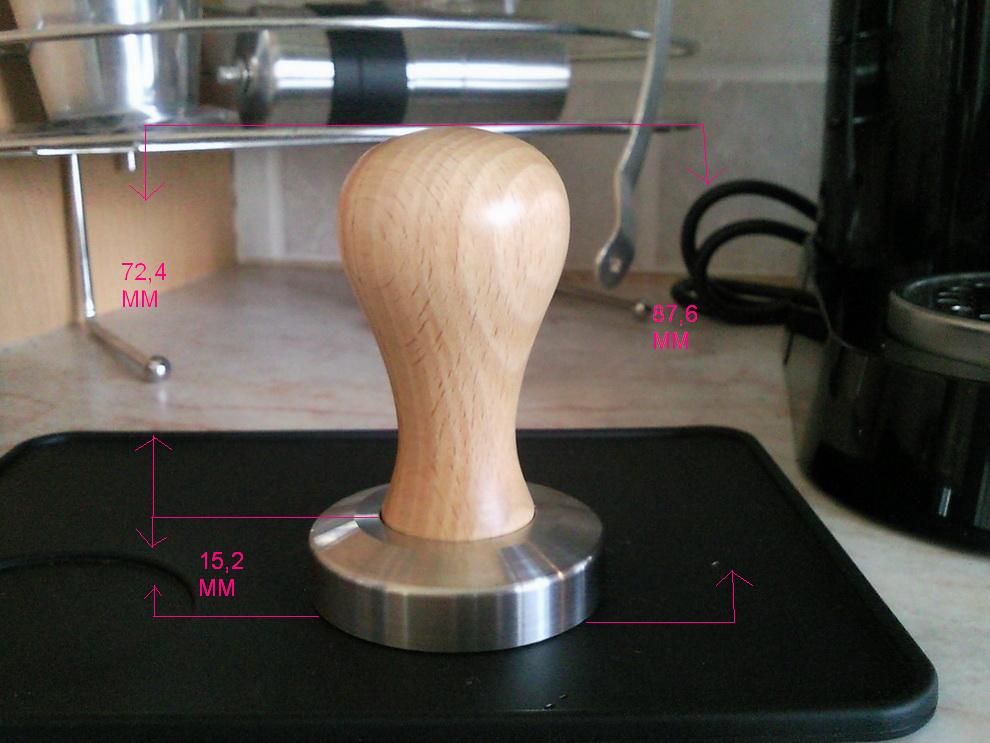 το βαρος του heft tamper ειναι 322γρ και το χερουλι του ειναι κατασκευασμενο απο ξυλο οξιας.