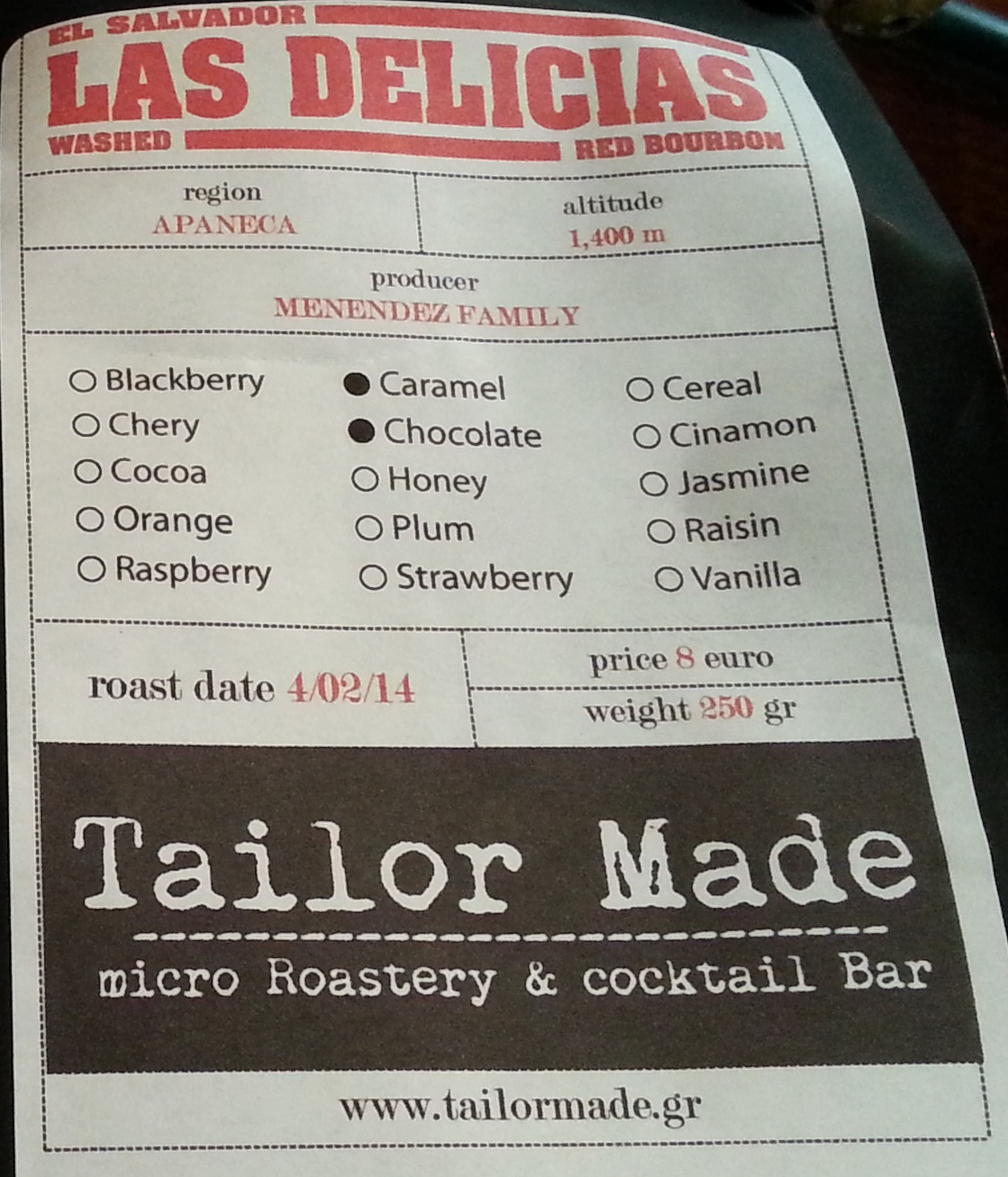{ TAGS }coffee review,espresso,tailormade,shot,cappucino,εσπρέσσο,σοκολάτα,καραμέλα,bourbon