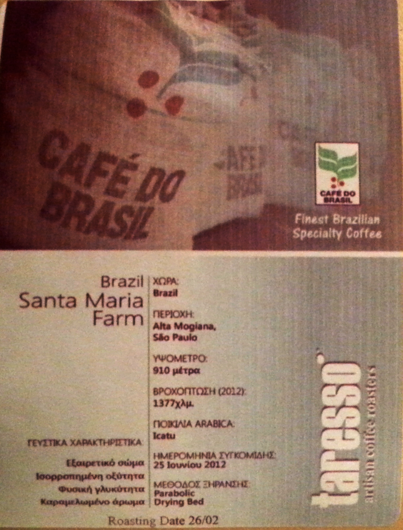 { TAGS }Santa Maria,Alta Mogiana,Review,coffee,coffeeheat.gr,Brazi,Sao Paulo,Taresso,espresso,εσπρέσσο